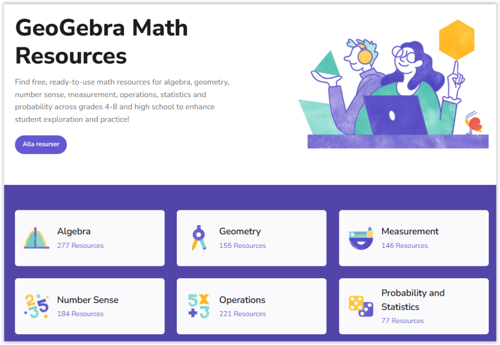 På GeoGebras hemsida finns en stor skatt som är gömd bakom adressen geogebra.org/math. Jag har översatt tio av de högkvalitativa algebraaktiviteter som finns där till svenska. Fokus ligger på algebra och funktioner för gymnasiet.