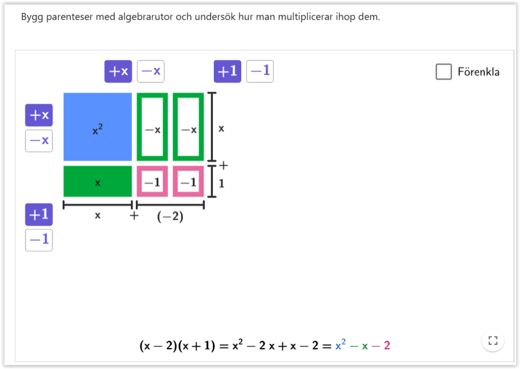 Sidan är väl värd ett besök. Det mesta materialet är riktat till åk 4-8 men numera finns alltså en hel del material för år 9-12 också. Jag valde att översätta några av dessa, med fokus på algebra, främst så att kunskapen om sidan geogebra.org/math sprids. Det finns en hel del fantastiska aktiviteter där och du kan (om du har ett eget gratis GeoGebrakonto) spara dina egna favoriter i en egen GeoGebrabok. Är du osäker på hur så är det bara att höra av sig.