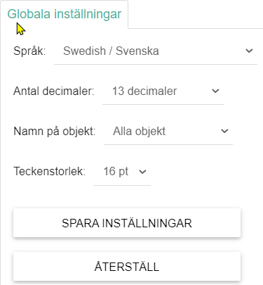 Här hittar du även alternativen Spara inställningar och Återställ standardinställningar.