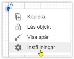 Två av grundinställningarna är intressanta. Hjälpobjekt kan alltså dölja ett objekt från Algebrafönstret. Lås objekt kan fixera det så att det inte går att flytta.