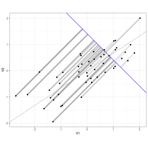 (Minsta kvadratmetoden kan för övrigt visualiseras som om punkterna ”drar” i linjen med hjälp av fjädrar – se den här korta artikeln med sin suggestiva animering.)