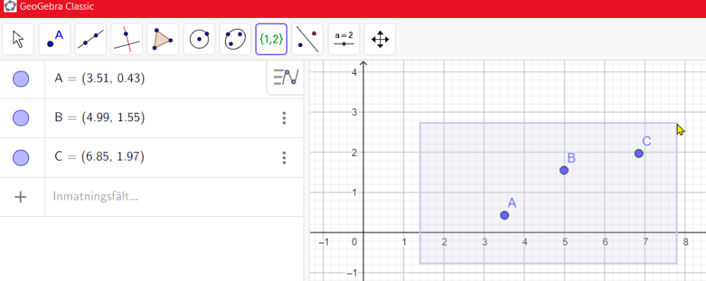 Ett till exempel: Du kan skapa en rektangel genom att skapa en punkt A i origo och punkterna B och C på x-axeln och y-axeln. Genom att plocka ut x-koordinaten för B och y-koordinaten för C så kan du skapa det sista hörnet som punkten D = (x(B), y(C))