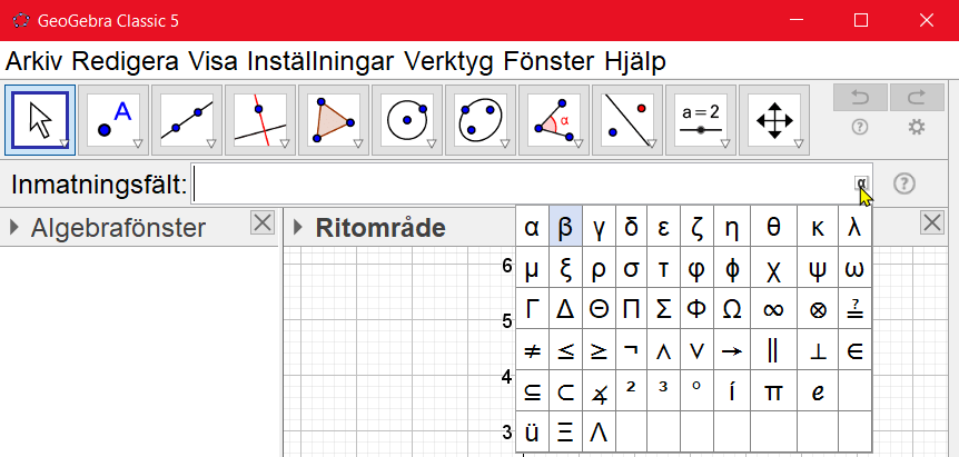 Grekiska bokstäver och övriga tecken fås genom att hålla in Alt och sedan trycka motsvarande bokstav på tangentbordet. Inte alla grekiska bokstäver kan direkt fås med en tangentbordsgensväg. (I Classic 5 kan de andra hämtas genom att trycka på ”α”-knappen längst till höger i inmatningsfältet).