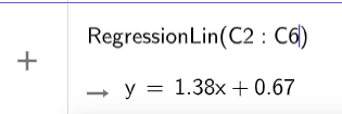 Plocka ut koefficienterna från en regressionsfunktion: Om f är funktionen som vi bestämt med en regression så blir Koefficienter(f(x)) = {4.263, 0} alltså en lista med koefficienter.