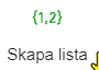 Du skapar en kort lista enklast genom att skriva in den direkt. L = {0, 1, 2, 3, 4, 5, 6, 7, 8, 9, 10} skapar listan L som innehåller de första 11 naturliga talen. Varje element i listan ska separeras med kommatecken och listan avgränsas med klamrar {…}. Just den här listan kan också skapas med skrivsättet L = {0..10} (2 eller fler punkter). Det fungerar bara för konsekutiva heltal.