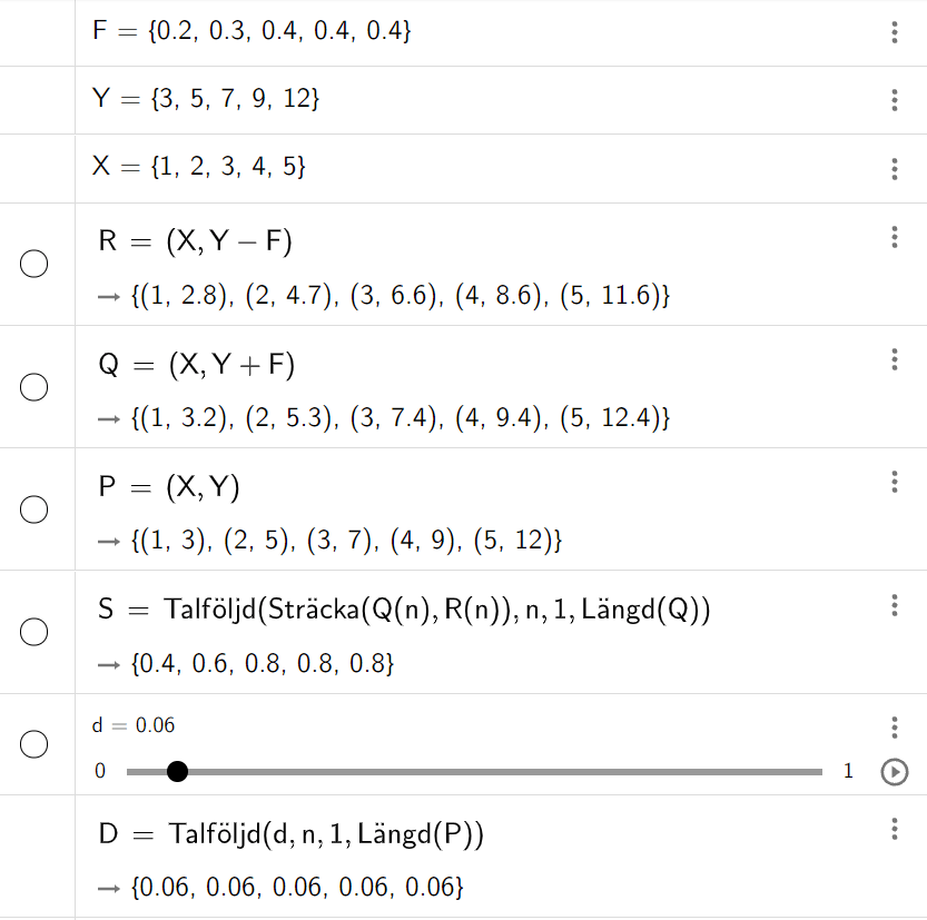 Kommandot Talföljd(…) fungerar här som en for-loop som skapar en sträcka i taget för alla n-värden från 1 till antalet punkter.