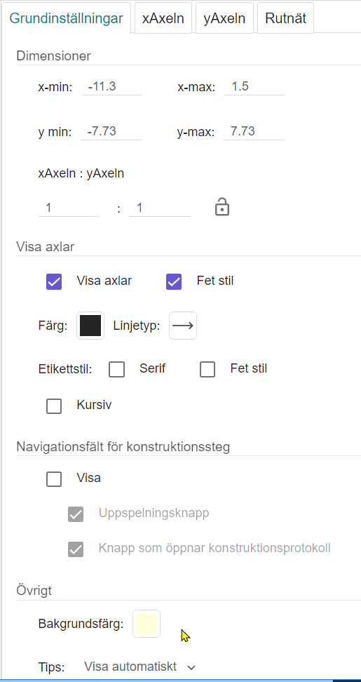 Starta Geogebra så gör vi lite anpassningar.