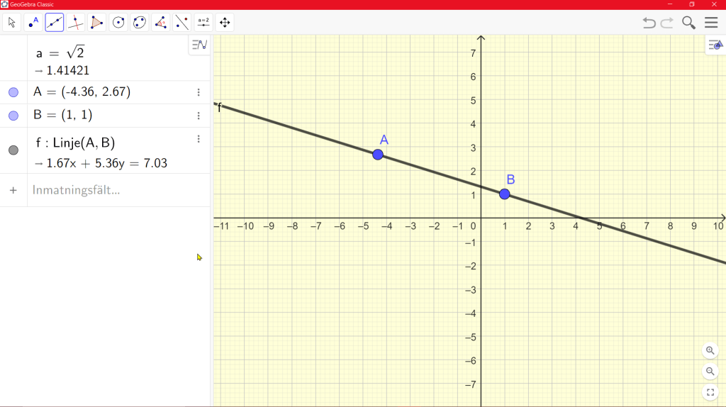 Tre tryck på Ctrl-2, en ljusgul bakgrund och 5 decimaler så ser det ut så här istället. Mycket tydligare för eleverna.
