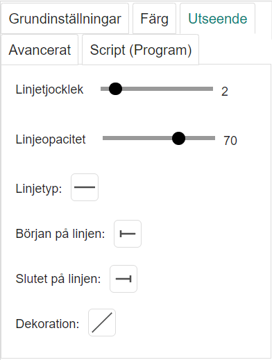 Egenskaper för utseendet för sträckor