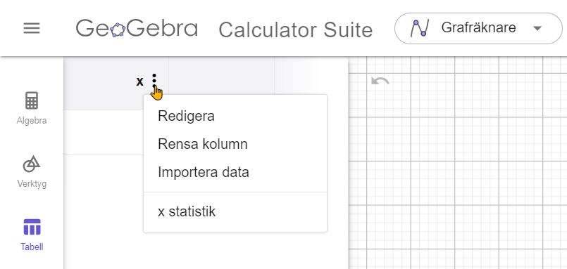 Det ska nu gå att starta en Classroom-session från vilken resurs som helst, även från grafräknaren som körs direkt i webbläsaren, det vill säga, även om du inte sparat din konstruktion. Klicka bara på ”Tilldela”-knappen uppe till höger och välj GeoGebra-lektion. Lektionen sparas automatiskt under ett standardnamn och eleverna kan ta del av var sin egen kopia av din konstruktion genom koden som visas på skärmen. Du kan sedan se vad varje elev gör på din egen skärm.