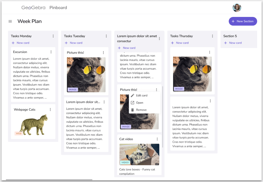 Länken till resurserna (utan att behöva byta språk) är https://geogebra.org/math. Dessa har nu även förhandsgranskning av elevvyn. Det finns även en del resurser översatta till spanska (byt språk för att hitta dem).