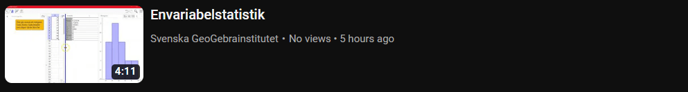Det finns redan en film om regressioner, så det tog jag inte upp speciellt. Fokus i ena filmen ligger på envariabelstatistik, både utan och med klassindelning, samt att skapa lådagram över två populationer som ska jämföras.